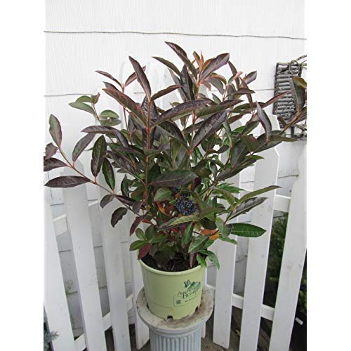 Details: Viburnum nudum `Winterthur` one of the best viburnums available, This plant is known by few people but cherished by birds everywhere. One look at its dense, rounded form tells you that it is a great plant to provide cover & nesting area to a considerable group of our favorite birds. What you might not know is that birds are enthralled by the dark blue to black berries produced in the late summer as a result of big, fragrant, white colored April-May flower heads. Even better, 'Winterthur' Tolerates partial shade well while growing famously in a wide range of soils from dry to moist. 'Winterthur' Is perfect alone or in groups to create a bird friendly, American beauties hedge & it will take your breath away in the fall with a foliage show of crimson-purple color that must be seen to be appreciated. Grow tips thrives in full sun. Fertilize yearly with an organic fertilizer. Prune in early summer right after bloom for size control & shaping.