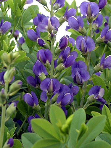 Details: BAPTISIA AUSTRALIS Stately and stunning are two words that accurately sum up this native perennial that is long lived and easy to grow. While a perennial that dies back to the ground each year, Baptisia looks like a shrub once it emerges from the soil with multiple, tall, upright, almost woody stems creating a big, beefy bush with deep green pea-like foliage. By mid-May, the top of each stem sports a string of buds that open by late month revealing deep, indigo blue, hooded, pea-like flowers that may stretch 6-8" high. The color is stunning against the foliage backdrop and the flowers are long lasting, staying in color well into June. Baptisia is easy to grow in any sunny, well-drained soil. It is drought tolerant and has an extensive root system which makes it difficult to move once established so find it a permanent home and enjoy the color! Grow Tips Grows best in full sun, though it tolerates light shade. Water regularly the first season, but drought tolerant once established.