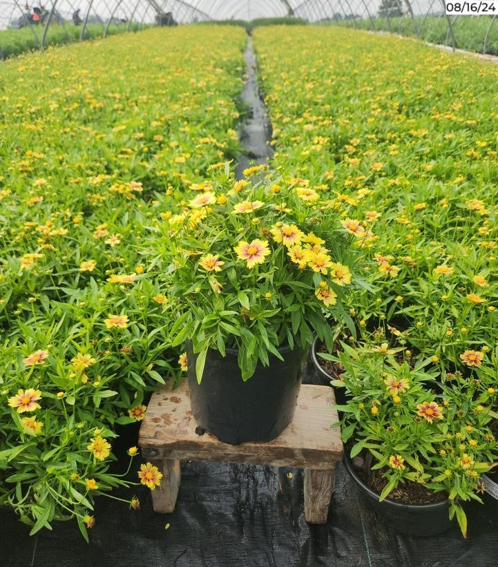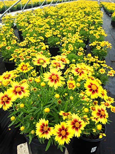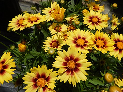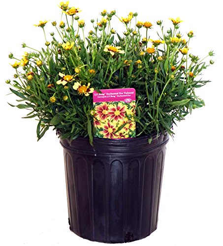 Details: COREOPSIS LI`L BANG `ENCHANTED EVE` PPAF Ablaze with butter yellow blossoms with a soft red eye that extends to cover more of the petal in cooler temperatures. Forms a compact mound of medium green foliage that stays clean and neat all season. Sterile flowers need no deadheading. Attractive in mass plantings. Excellent cut flower. Grow Tips Prefers well-drained soil in full sun. Drought tolerant once established. Pull off dead foliage in late fall, being careful not to damage the crown.