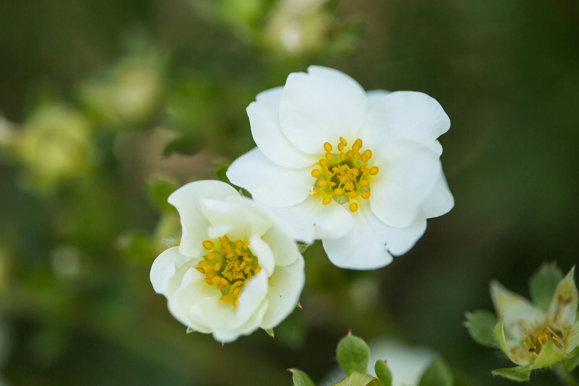Details: Add a pop of white to the landscape with this double flowering potentilla. Bright white flowers adorn this rounded shrub throughout the entire summer. Dark green foliage contrasts beautifully with the flowers.