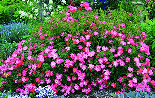 - Compact, spreading Rose with gorgeous pink flowers. Blooms start in late Spring. Perfect for small gardens, hillsides, or perennial beds.