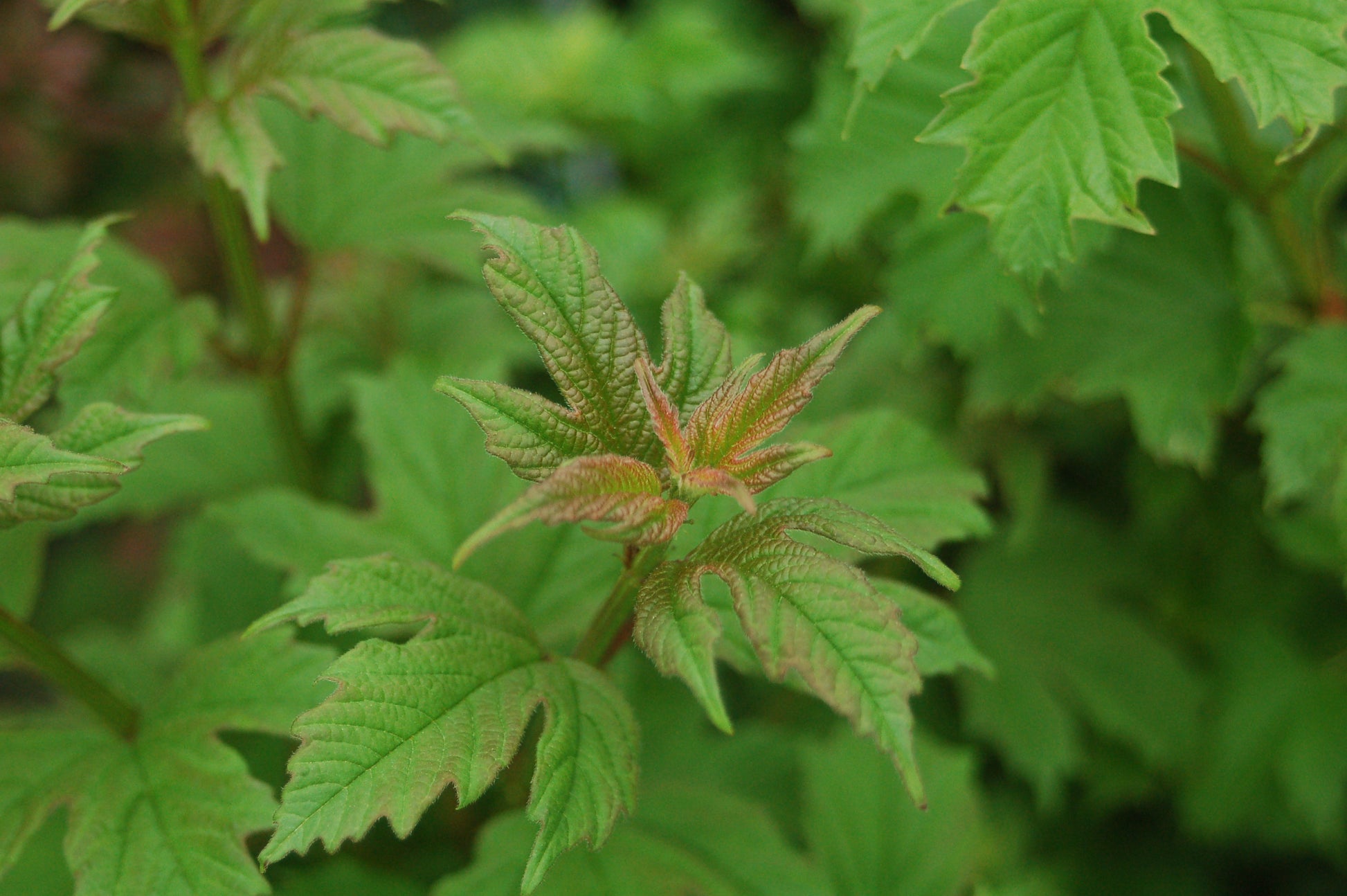 - Rounded with upright branches, this plant features distinctive trident shaped leaves, an aggressive growing nature and flattened heads of Small White Flowers in late may that are a boon to native pollinators and butterflies. Fiery red fall foliage color.