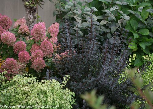 Details: A live outdoor plant from Proven Winners®. Tiny Wine is extra bushy, with small, refined leaves. The dark bronze-maroon foliage is colorful all season, and contrasts beautifully with the white flowers in late spring. The flower show is exceptional, with dainty flowers blooming up and down the stem in a very showy display. This durable plant may be used in the landscape for season-long color, and is also a great choice for patio containers.