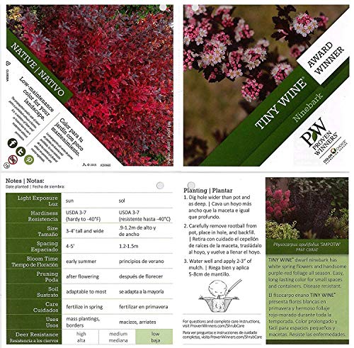 - PLANTING GUIDANCE: Like all Physocarpus, Tiny Wine is exceedingly hardy and very easy to grow. It thrives in all but the wettest soils and loves a fully sunny location. Tiny Wine is easy to prune right after bloom passes in the early summer although with its compact size, it may rarely need to be pruned! For best results, plant in USDA Zone:3-7 - Mature size: 3-4 ft H x 4-5 ft W