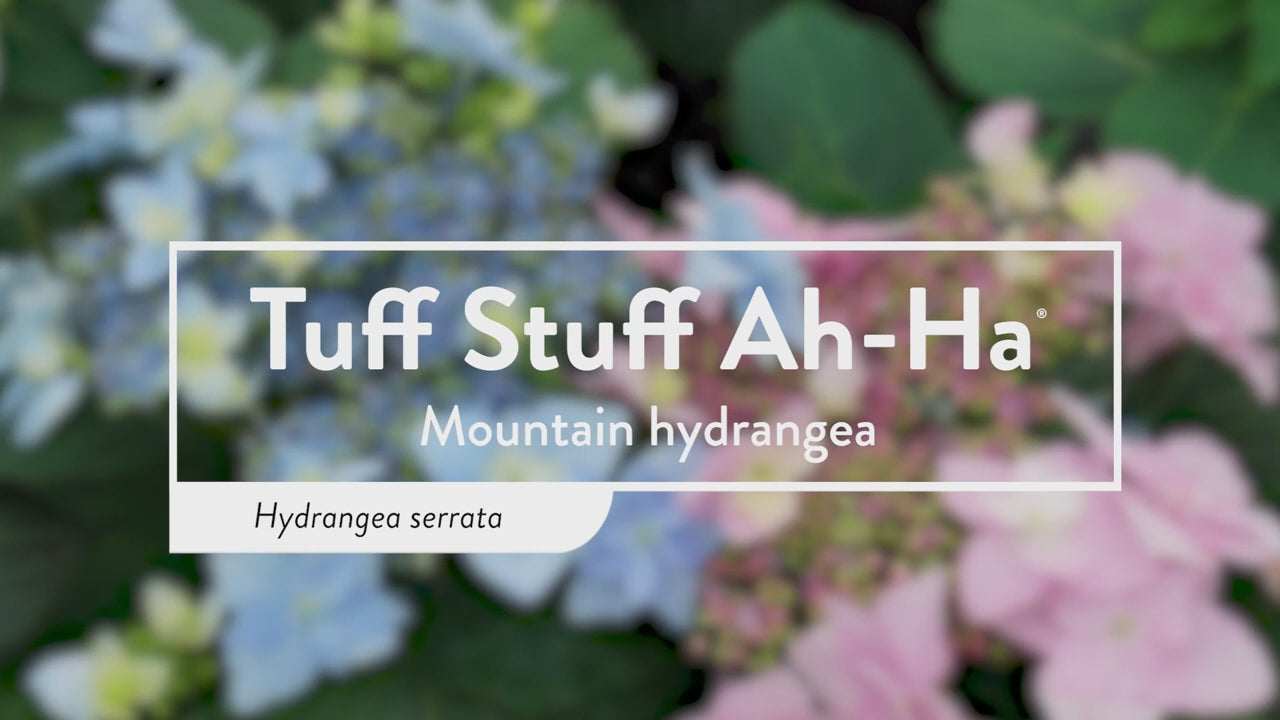 - LIVE PLANT: When it comes to blooming, Tuff Stuff Ah-Ha hydrangea can't stop, won't stop! All summer long, it devotes its energies to creating flower buds on its new growth so that you have a constant supply of fabulous blooms from early summer through frost. Tuff Stuff Ah-Ha hydrangea will bloom pink or blue, depending on soil chemistry.