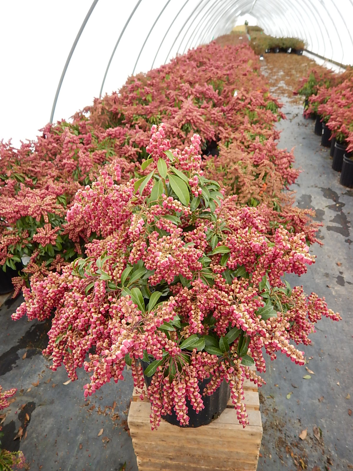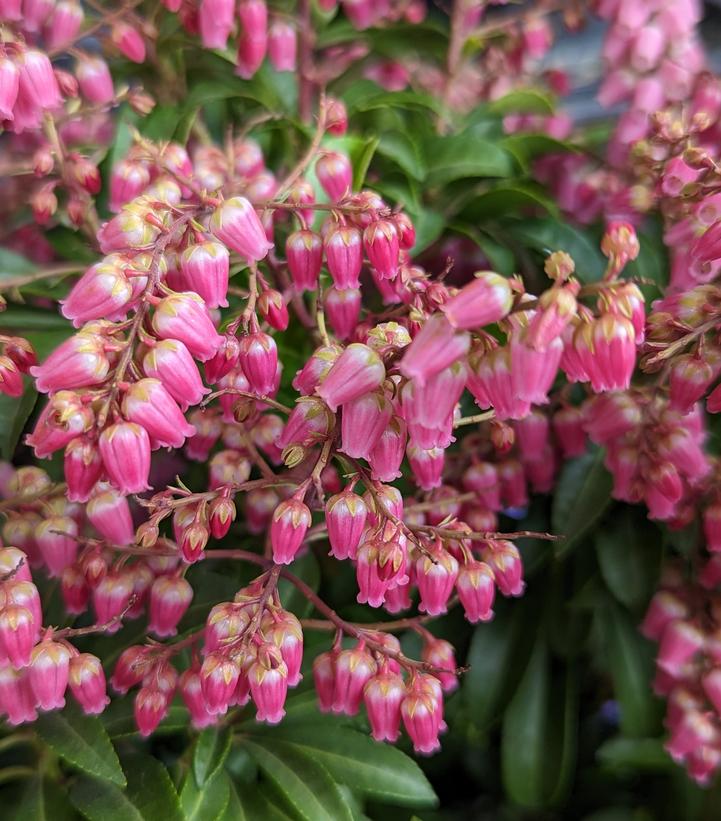 Details: There is nothing in the plant world to raise a gardener's passion that an introduced plant that does something new, different or better. 'Passion' is decidedly one of those plants that injects some pizzazz and hot flower color into the mostly white blooming world of Andromeda. 'Passion' is a heavy blooming beauty that sets upright to slightly pendulous strings of small flower buds at the end of almost every branch. These buds open in mid to late April with a show of deep, cerise-pink, bell shaped flowers in such numbers it could turn the Andromeda world upside down! While other varieties have pink flowers, 'Passion' has the deepest pink ones by far and in numbers that put these other pink pretenders to shame all on a dense, round, well-behaved plant with lustrous, deep green, evergreen foliage. It is the perfect deer resistant winner for a foundation planting or border planting in your landscape especially in a half day sun area that has winter wind protection.