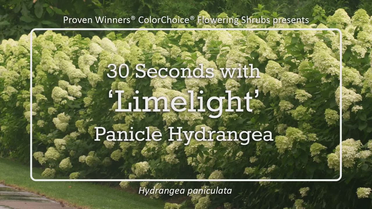 Details: HYDRANGEA PAN. `LIMELIGHT` Get ready for a revolutionary new member of the Hydrangea family! 'Limelight' will take your breath away with its unique lime-green flowers that cover the plant in big, poofy snowballs starting in mid-August. Very vigorous and very floriferous, this is just the plant to inject excitement into the late summer landscape.