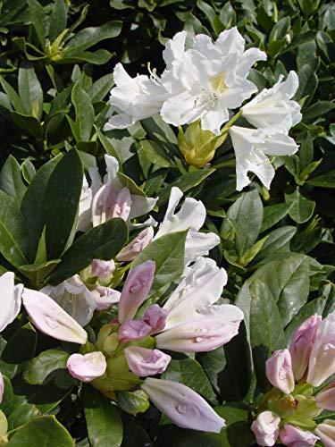 - Profuse blooming rhododendron with gorgeous White flowers. Flowers open in may from pink buds. Dark Green foliage provides a nice contrast to the flowers.
