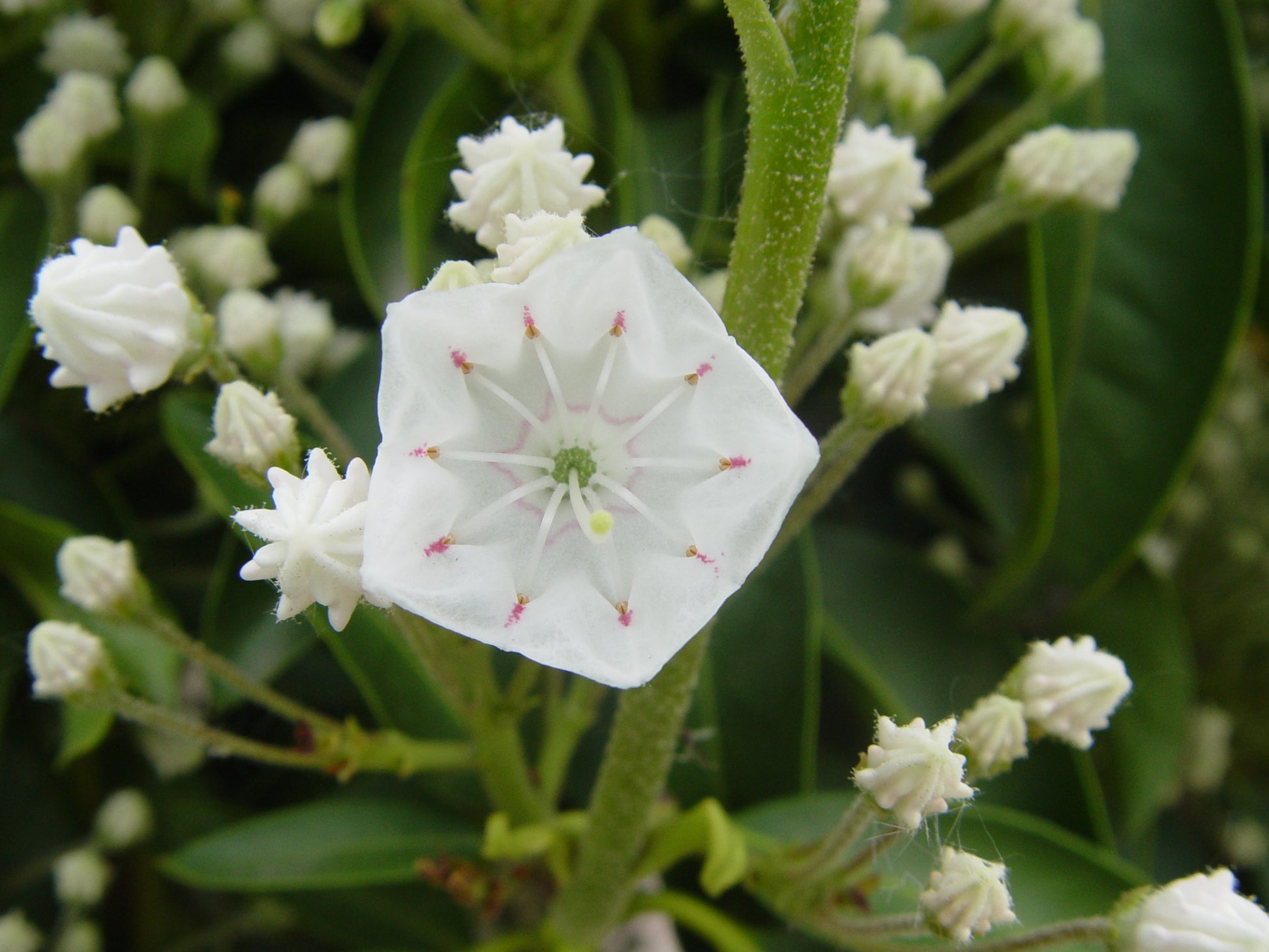 Details: A Kalmia with a neat, tidy, densely rounded form, 'Snowdrift' is renowned for big bunches of white buds that open to the purest white flower trusses of any Mt. Laurel selection. Dense and compact enough to perform well as a foundation plant, this selection's form and big, shiny, medium green foliage also make it an ideal selection for grouping and naturalizing.